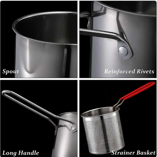 Deep Frying Pot Kitchen Fryer With Strainer Stainless Steel
