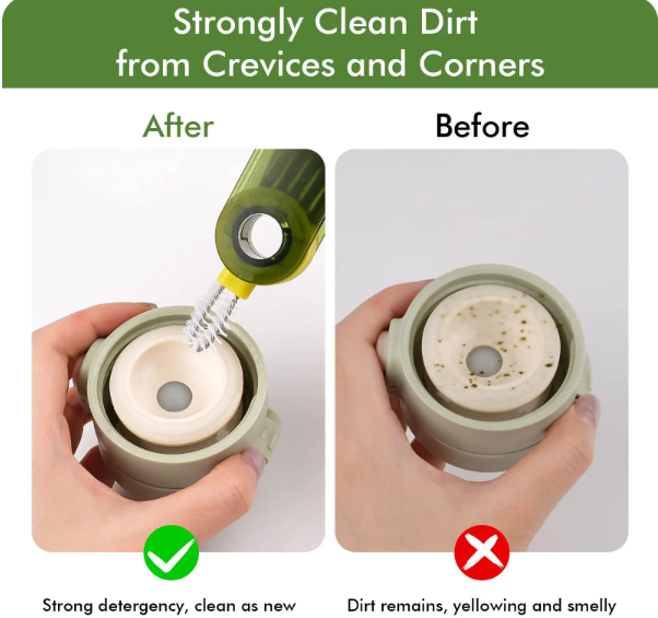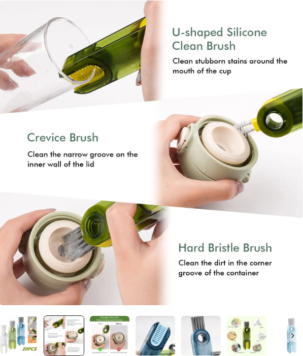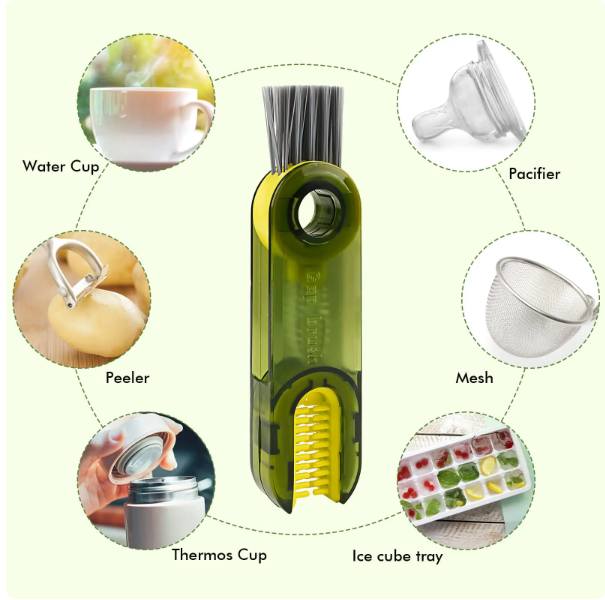 This 3-in-1 cleaning brush is the perfect tool for keeping your water bottle clean and fresh. Made with durable plastic, it comes in two colors and is suitable for all types of cups. The U-shaped design makes it easy to reach every corner, while the easy-to-use and clean function makes it a must-have for every household. Upgrade your cleaning routine with this versatile silicone cleaner. Includes 1 cup cleaner.