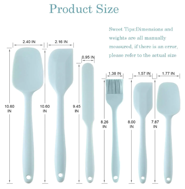 Our 6-piece silicone spatula set is a versatile collection that includes 6 different tools, perfectly suited to meet all your daily baking needs. Whether you're spreading, mixing, or smoothing, this comprehensive set has you covered.