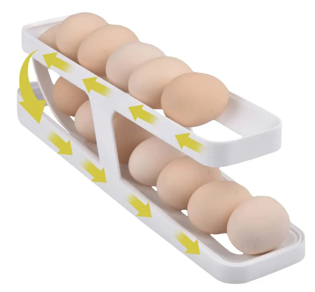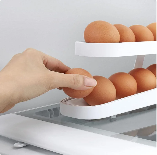 Space-Saving: This rolling egg holder offers convenient and quick access to your eggs while saving valuable fridge space. With two tiers capable of storing up to 15 eggs and a sleek design, it seamlessly fits into your refrigerator.