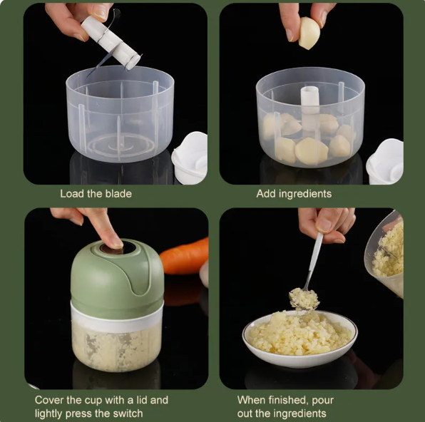 2. Sturdy and Durable: Featuring a stainless steel blade, this crusher is robust and long-lasting, ensuring efficient cutting. The food-grade plastic cup is BPA-free, keeping food safe and free from bacteria.