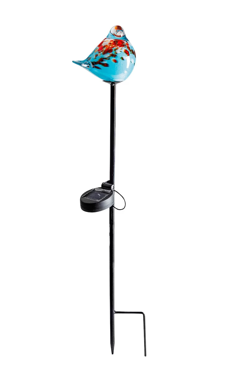 Beautifully handcrafted art glass Bird garden stake w Solar LED light adds fun and color to your outdoor space.