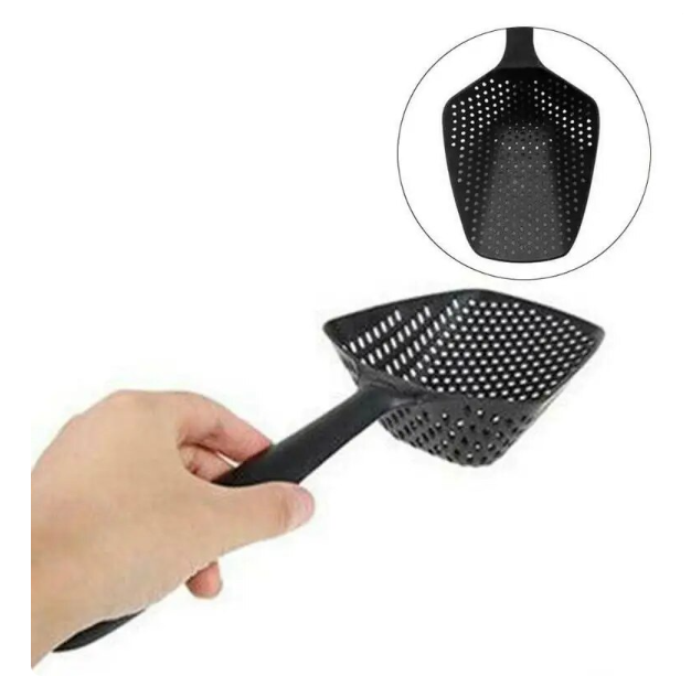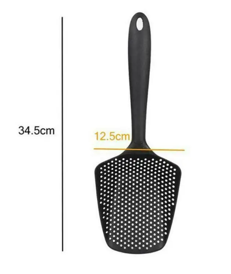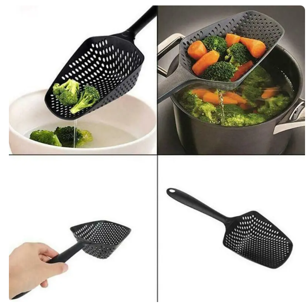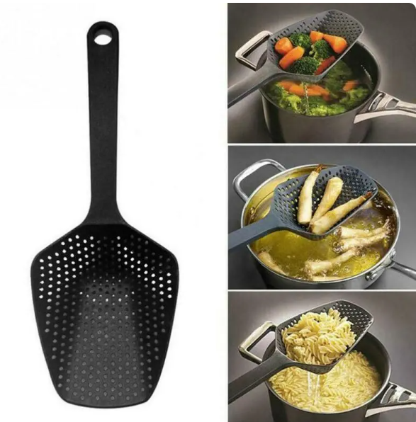 Introducing our brand new, high-quality kitchen tool! This innovative scoop allows you to effortlessly scoop and drain directly from the pan. Its design makes it easy to wash and clean, and it's perfect for straining pasta, vegetables, and fried foods. Lightweight and practical, it's a versatile addition to any kitchen. Plus, it's dishwasher safe for added convenience.